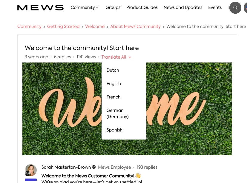 Yes! You are able to translate posts, comments, and articles into any of the five languages Mews supports.
