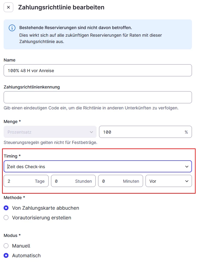Bei gewissen Raten können unsere Gäste bis 24 Stunden vor Anreise bzw. Check-In kostenfrei stornieren. So ist es auch bei Mews eingestellt (siehe Bild 1 anbei).