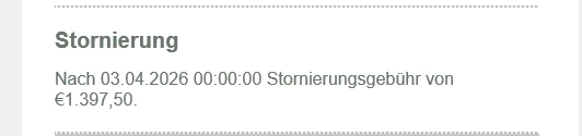In der Bestätigung des Gastes steht jedoch, dass ab 00:00 Uhr des Vortages 100% fällig werden (siehe Bild 2), die jedoch erst ab 15 Uhr fällig werden dürften.