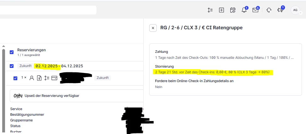 Allerdings steht bei uns als Stornierungskosten immer bei allen Reservierungen 0€: