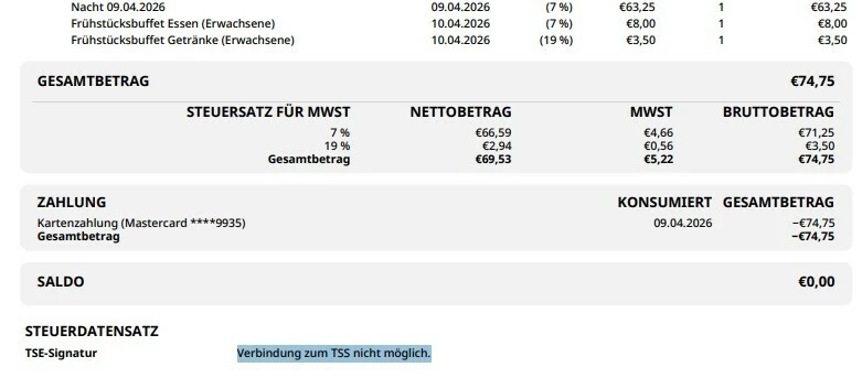 wir binden es über die German fiscal registry integration Schnittstelle an, nun ist in diesem Jahr schon mehrfach vorgekommen das der Steuerdatensatz TSE Signatur nicht auf der Rechnung erscheint.