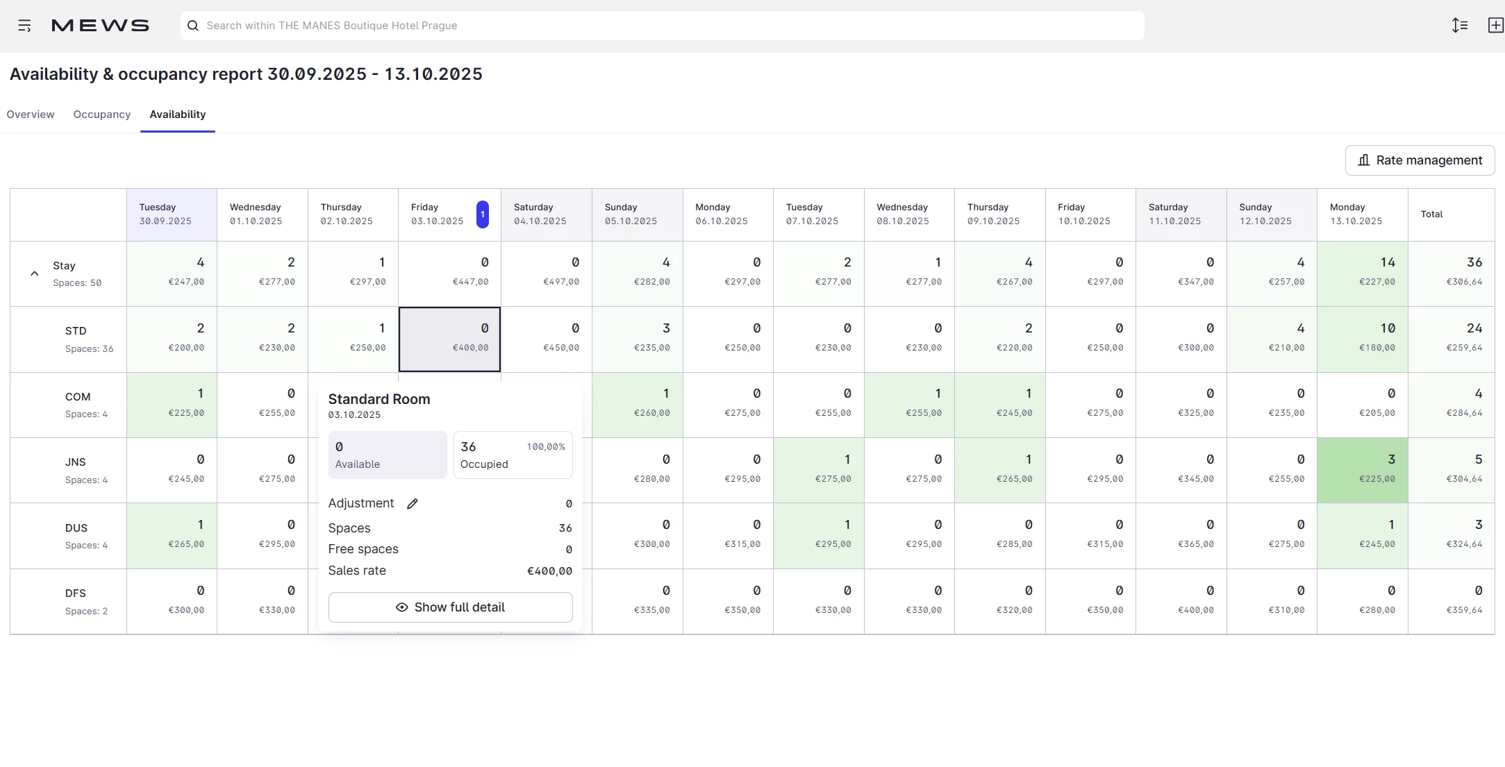 You can do so in the Availability & Occupancy report.