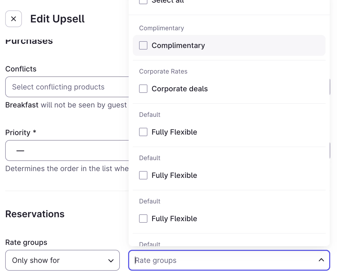 From there you can manage, edit, and create your upsells that you need for your property.