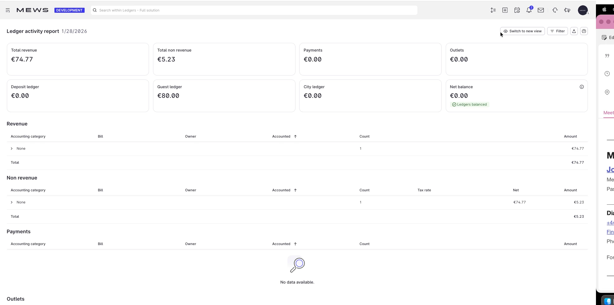 For revenue reporting of longer timeframes, we plan to introduce a Trial Balance in Mews UI later in Q1, focused on aggregated figures rather than detailed movements