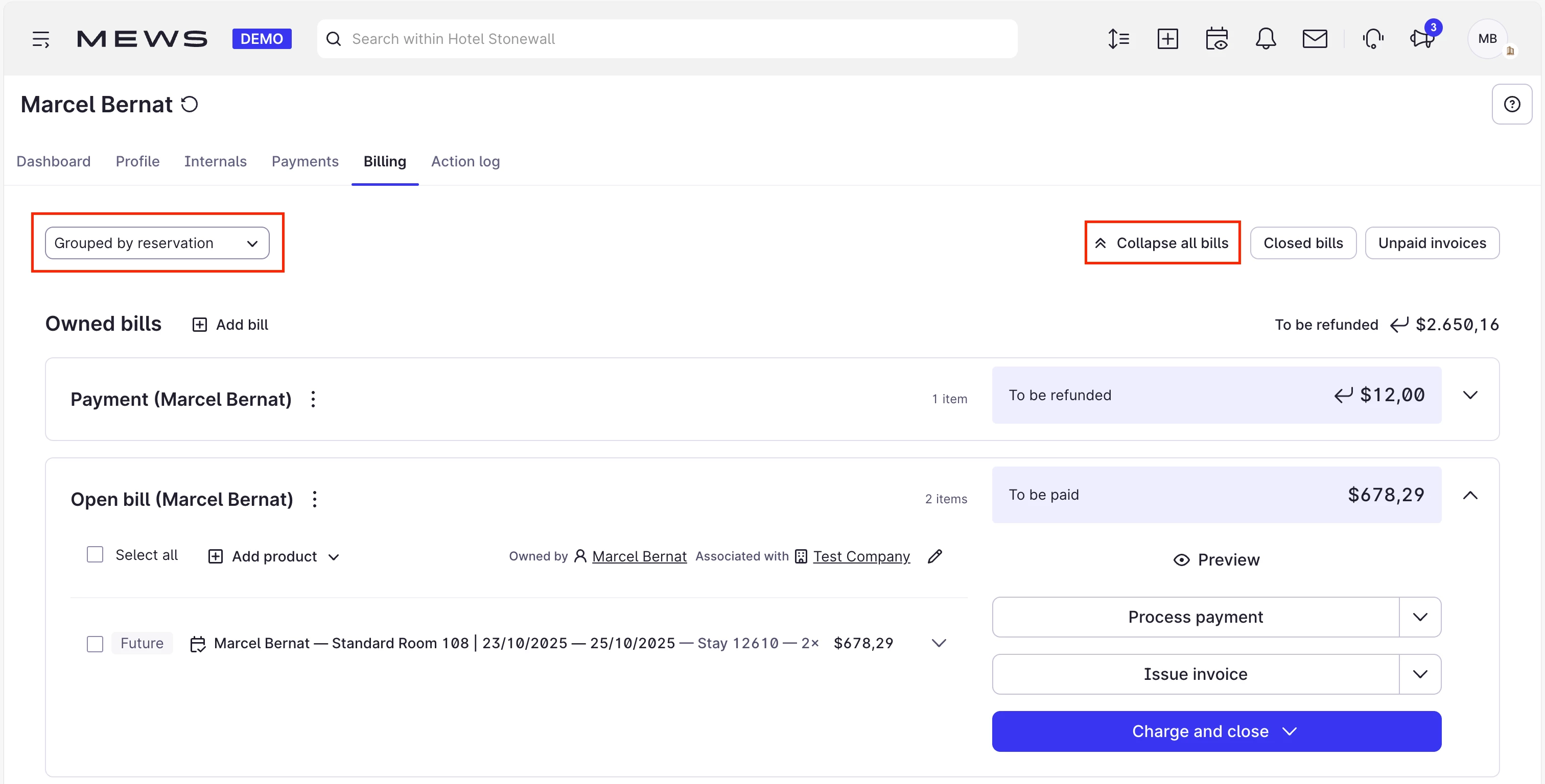 Expand all bills vs Collapse all bills