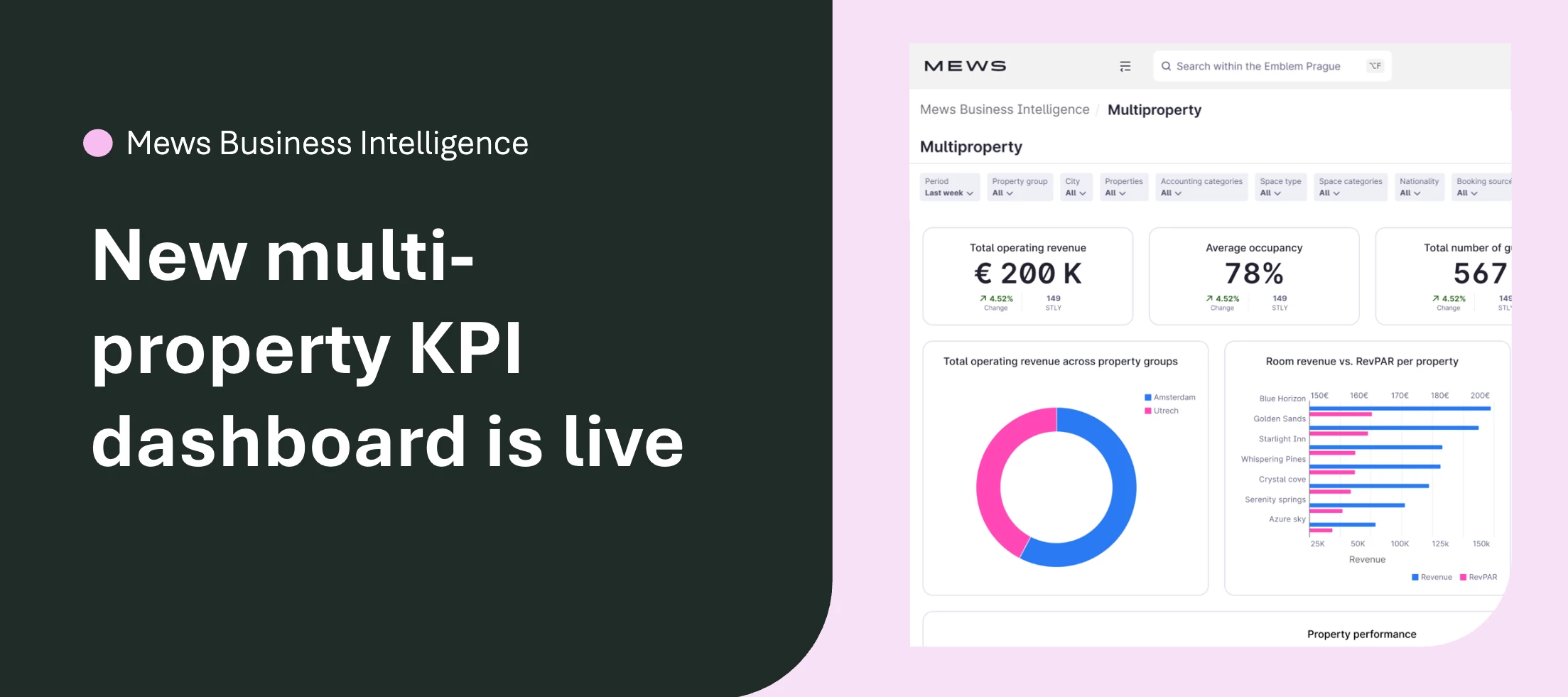 Are you managing multiple groups or properties? Well, your day just got a lot simpler because our new KPI dashboard is now live for Mews Multi-Property users.
