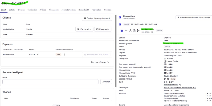 Bonjour, Il arrive souvent que nous devons changer le nom d’une réservation sans l’annuler. Par contre, l’ancien nom reste visible dans le nom du groupe et en haut à gauche de la réservation. Cela crée de la confusion. Est-ce qu’on peut faire quelque chose?