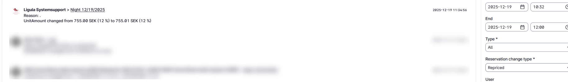 Need your help in figuring out what filters to set to see what pricing changes were done by staff. I am trying to figure out if the staff changed the nightly rate from the system suggested price to something else. Also trying to figure out if the staff changed the product prices to something else. Trying to keep tabs on unauthorized discounts given by staff. This is messing up revenue budgeting and forecasts. It is not feasible to go through each reservation and see what rates they have been charged. So I am hoping that there is a filter - ANY FILTER in MEWS - that can track what pricing changes were done by staff and for which reservation.