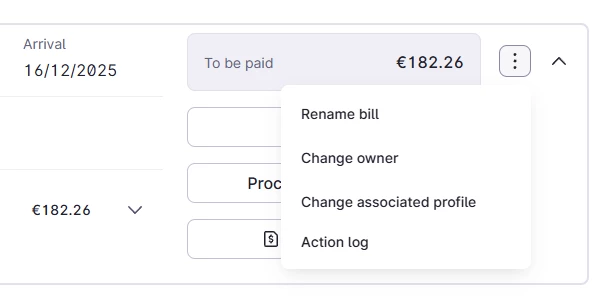 Die Ansicht „Unbezahlte Posten / Anzahlung“ ist in Mews keine vollwertige Rechnung, sondern ein Zwischenspeicher für Posten oder Zahlungen, die noch keiner richtigen Rechnung zugeordnet wurden. Deshalb stehen dort einige Funktionen, wie z. B. das Verknüpfen eines Profils, nicht zur Verfügung.