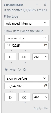I am looking for a filter that allows me to see, for instance, whether anything was sold for the night of December 24th, 2025, on January 1st, 2025, and at what price; then, on March 1st, whether any additional sales were made for that same date and at what price — as well as the cumulative number of room nights sold up to that day and the corresponding average ADR.